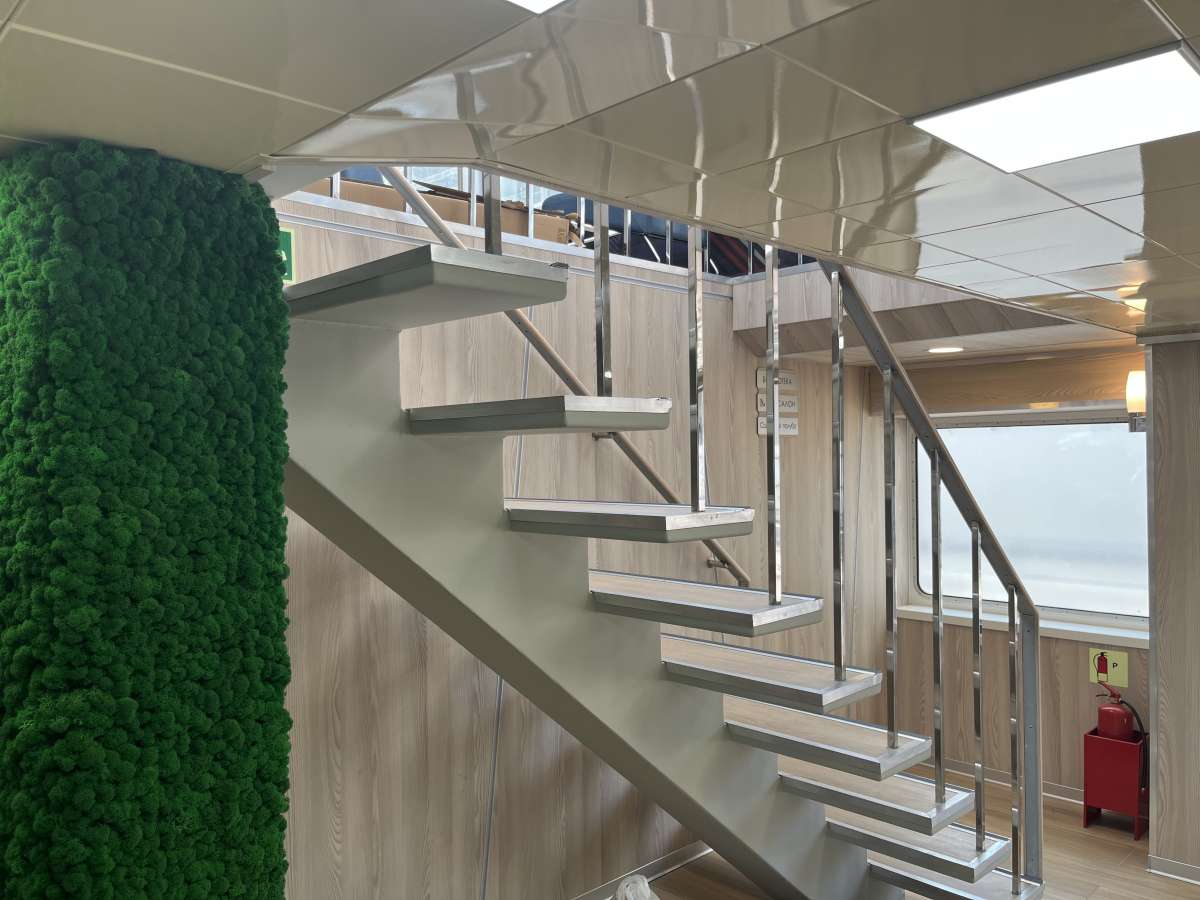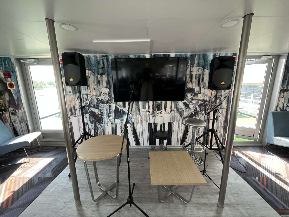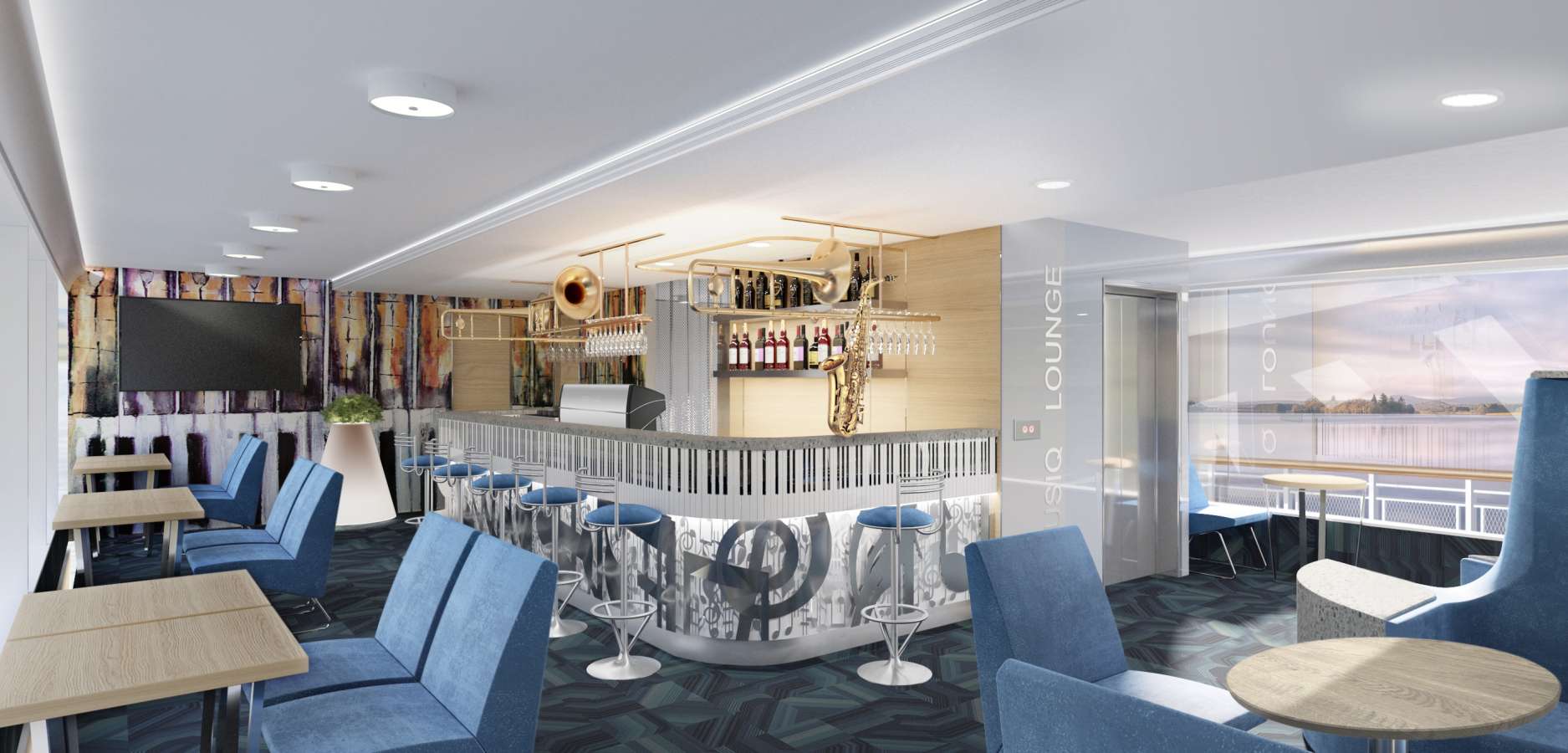 Сравнительно небольшие размеры теплохода позволяют чувствовать себя как дома: будь то ресторан с незабываемым панорамным видом, просторный лаундж-бар, где каждый день звучит живая музыка, прогулочная палуба или небольшой сувенирный киоск с широким ассортиментом товаров.