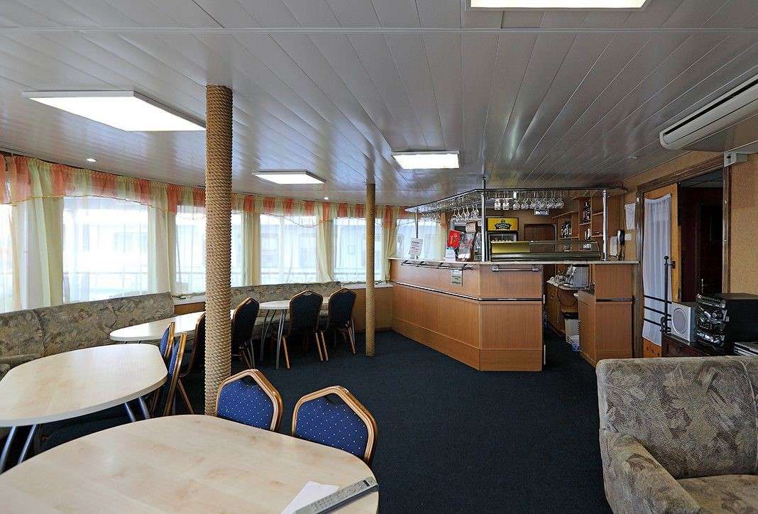 Теплоход оптимально подходит для совершения как непродолжительных, так и длительных круизов. Во всех каютах (кроме кают нижней палубы) есть кондиционеры, холодильники, телевизоры со спутниковым телевидением и телефоны. На теплоходе представлен широкий спектр кают: с частичными удобствами (с раковиной), со всеми удобствами (душ, туалет, раковина, кондиционер) и каюты класса «Люкс».