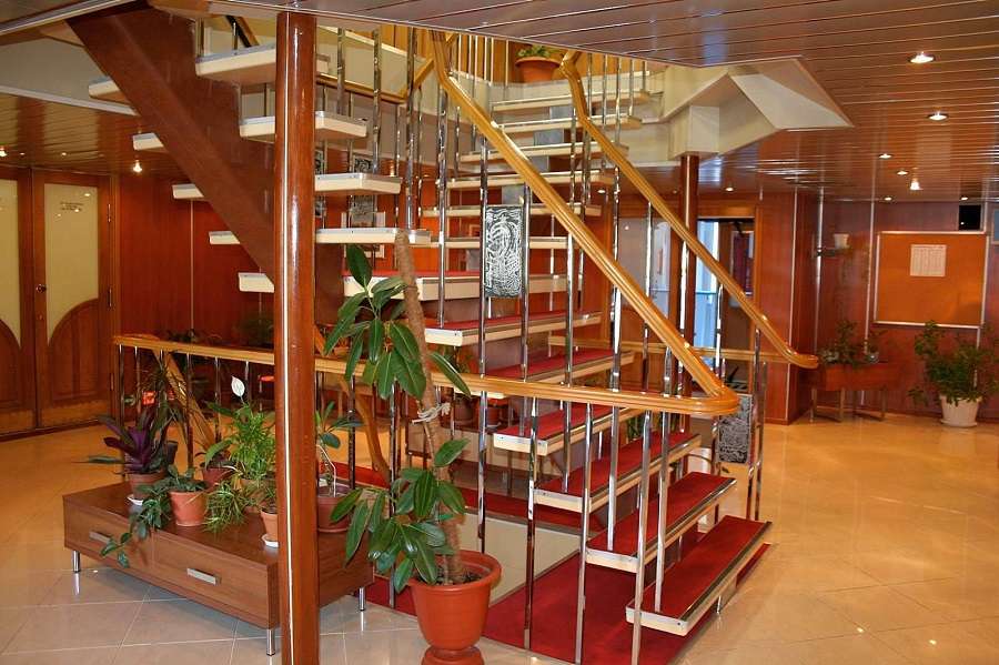 Туристы смогут посетить сувенирный магазин, парикмахерскую и сауну, а также расслабиться и пообщаться на солнечной палубе с бассейном и местами для загара. На борту есть кабинет врача. Программа пребывания на теплоходе-пансионате предусматривает комплекс мер, направленных на снятие психоэмоционального напряжения, оказывающих на человека оздоровительное воздействие, в том числе успокаивающее, повышающее работоспособность, иммунитет и настроение, также оздоровлению способствует свежий речной воздух. Анимационная программа: настольные и командные игры, интерактивные шоу-программы, тематические мастер-классы, танцевальные уроки, концерты и музыкальные вечера, творческие встречи, беседы и лекции, фильмы и мультфильмы, радиопередачи, детская анимация.
