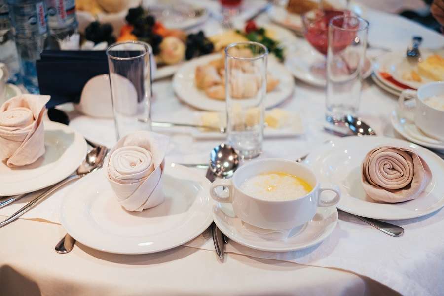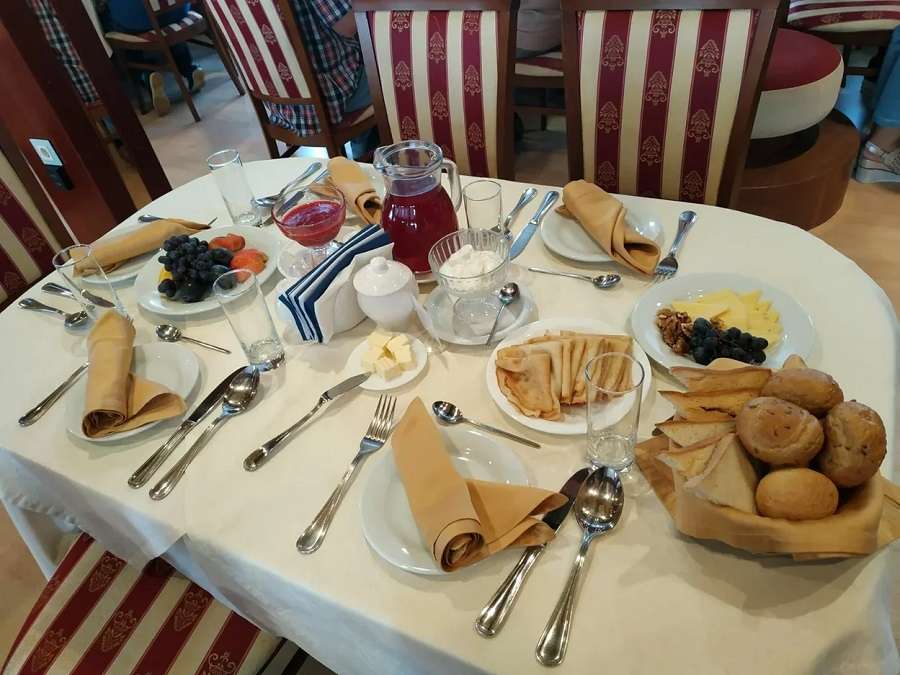 Питание осуществляется в ресторане, где гостям предлагаются завтраки, обеды и ужины, в том числе блюда байкальской кухни. В хорошую погоду для желающих столики могут быть сервированы на открытой палубе.