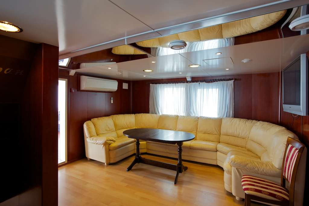 Для комфортного отдыха на теплоходе есть салон с баром, в котором проводятся встречи и лекции, там можно просто пообщаться и отдохнуть. Сауна с бассейном, рассчитанные на 5 человек, в бесплатном пользовании. Просторные открытые палубы для любования красотами Байкала.