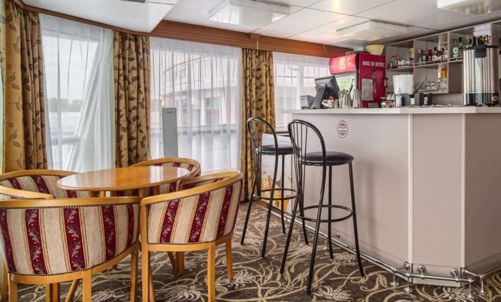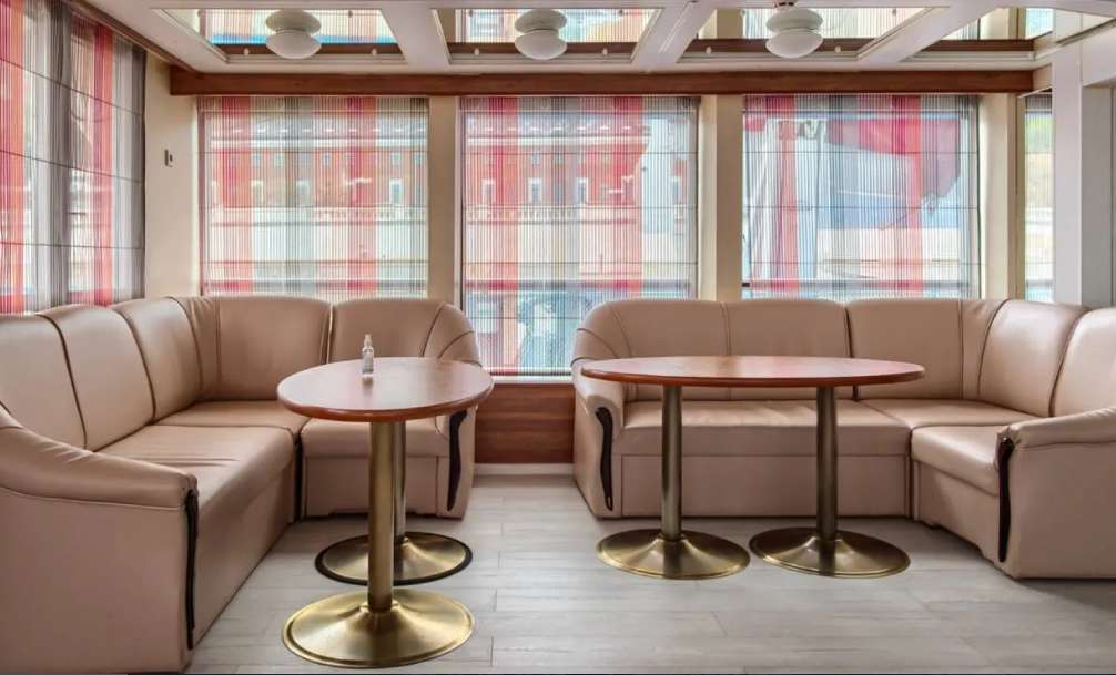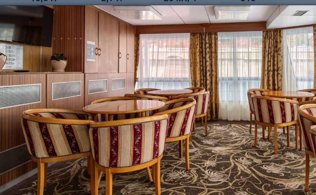 На этом теплоходе Вы можете отправиться как в длительное путешествие, так и в небольшой круиз выходного дня. Пассажиры судна окунутся в атмосферу плавучего городка с ресторанами и барами, сауной, читальным салоном, медицинским пунктом.