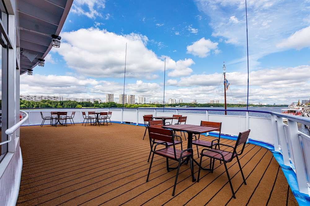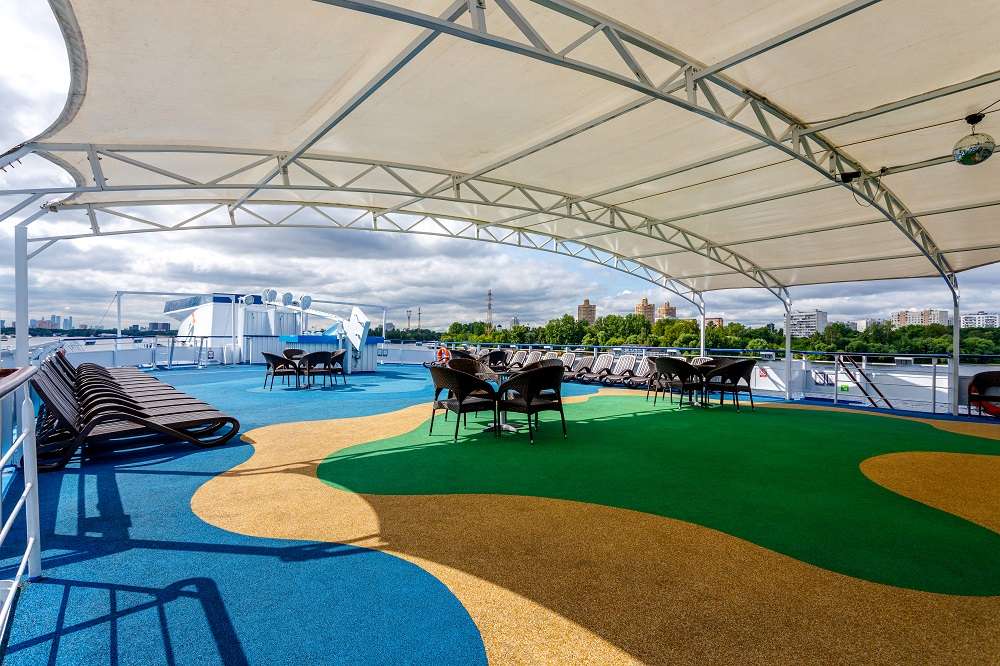 К услугам туристов на борту полный спектр развлечений: бары, танцевальные вечера под живую музыку, мастер-классы, занятия йогой, камерные музыкальные программы, вечерние представления в театре, детский клуб. На теплоходе вас ждет не только разнообразный, но и полезный отдых. Профессиональные инструкторы каждое утро проводят утреннюю зарядку и организуют занятия йогой и пилатесом. На палубе стоят тренажеры, на которых вы можете позаниматься в любое время. А в ресторане и баре вам предложат фиточай и кислородный коктейль.