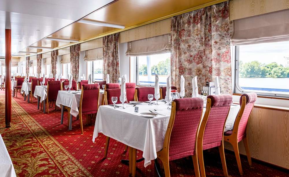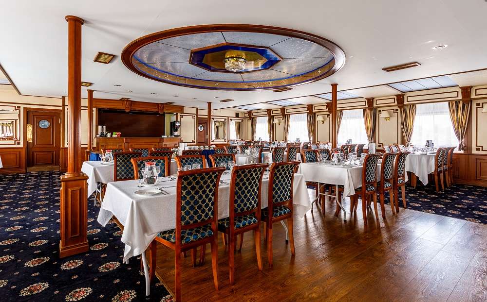 Если у вас имеются особые требования к питанию или противопоказания на определённые продукты, сообщите об этом нашему персоналу, и блюдо будет приготовлено индивидуально. По запросу в ресторане есть диетическое и безглютеновое меню. На борту теплохода вы сможете насладиться вкусной выпечкой и ароматным кофе Jardin Supremo (арабика из Колумбии), приготовленным профессиональным бариста.