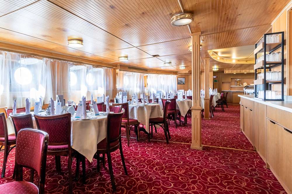 На борту теплохода есть два ресторана – на шлюпочной и главной палубах. Здесь три раза в день вас будут ждать изысканные блюда от шеф-повара .