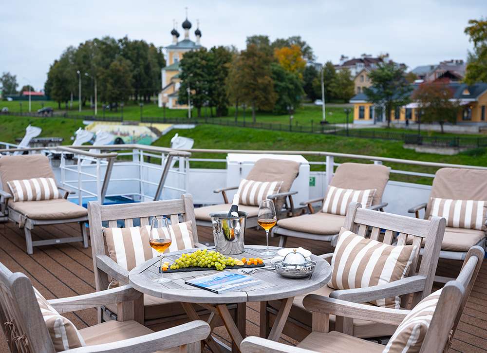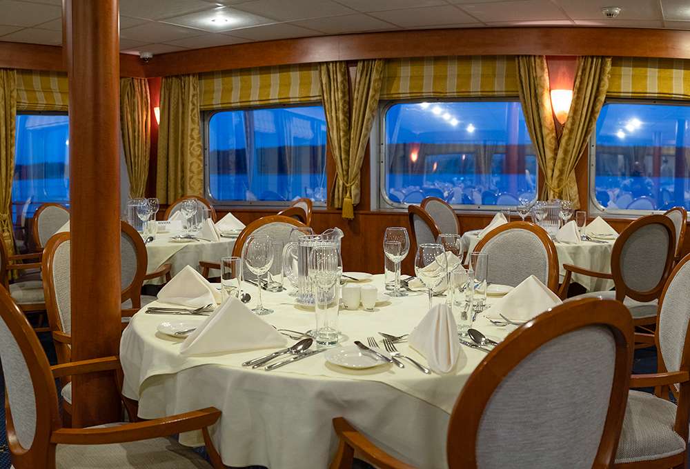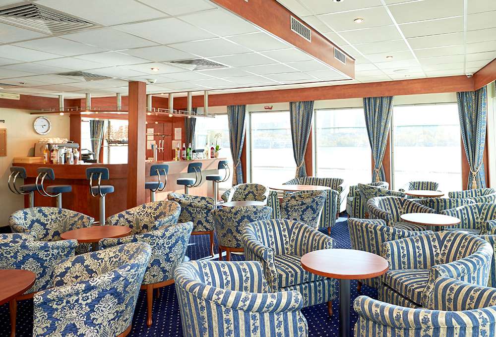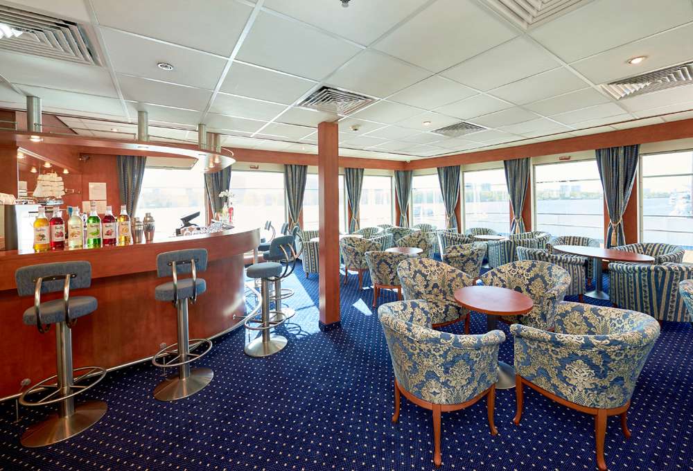 К услугам путешественников панорамный бар с собственной открытой обзорной площадкой, лаундж-бар с выходом на солнечную палубу, просторный ресторан, уютная библиотека. Судно оборудовано пассажирским лифтом.