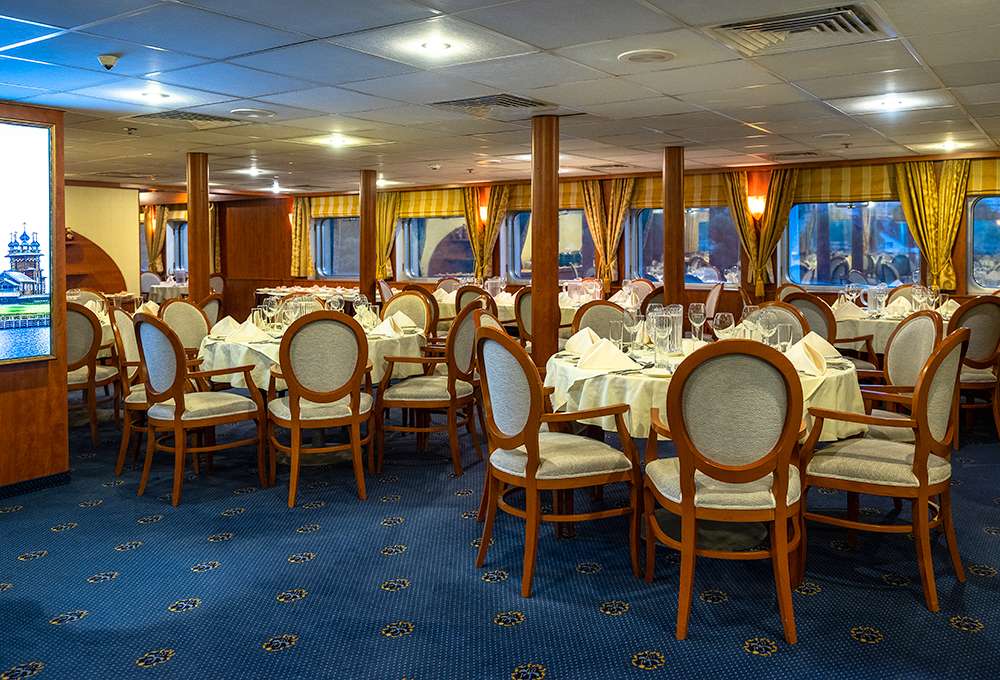 Теплоход «Россия» подойдет для тех, кто предпочитает спокойный респектабельный отдых. Соотношение числа членов экипажа к числу гостей – 1:2, что означает повышенное внимание к каждому гостю и камерную атмосферу на борту.