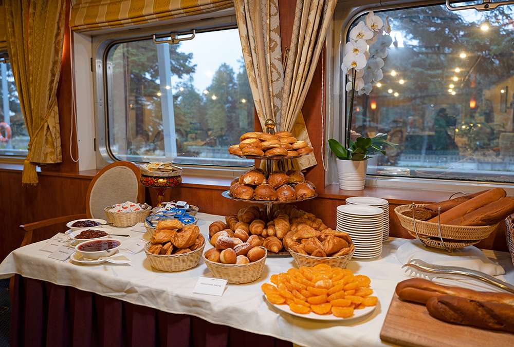 На всех теплоходах действует единая концепция питания. Если у вас имеются особые требования к питанию или противопоказания на определенные продукты, сообщите об этом нашему персоналу, и блюдо будет приготовлено индивидуально. По запросу в ресторане есть диетическое меню. На борту теплохода вы сможете насладиться вкусной выпечкой и ароматным кофе Jardin Supremo (арабика из Колумбии), приготовленным профессиональным бариста.