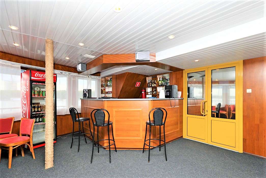 На борту работает арт-бригада, которая организует разнообразную развлекательную программу: концерты, зажигательные дискотеки, веселые конкурсы и творческие мастер-классы на любой вкус. К навигации 2023 в баре будет работать Wi-Fi.
